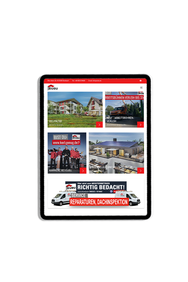 Als betreuende Werbeagentur durften wir für unseren Kunden EUBU ein umfassendes Kommunikationspaket umsetzen, das digitale Lösungen, klassische Printprodukte sowie hochwertige Werbetechnik vereint.