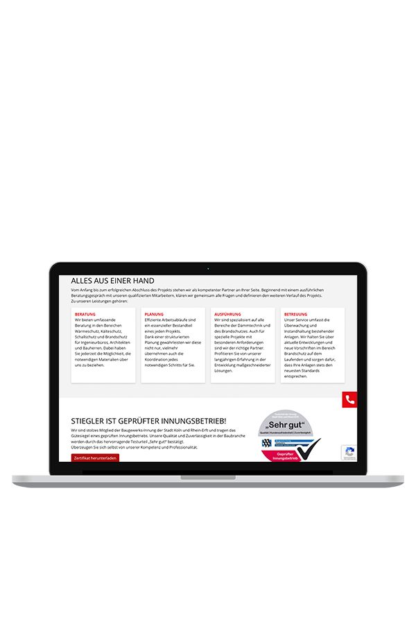 Digital entwickelten wir die gesamte Website der Stiegler Gruppe – von der Konzeption über Design und Umsetzung bis zum Livegang. Die Seite ist modern, responsiv und benutzerfreundlich aufgebaut, mit einer klaren Struktur und suchmaschinenoptimierten Inhalten. Wir betreuen den Webauftritt auch nach dem Launch durch laufende Wartung, Updates und Pflege.